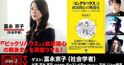 1月30日(木)20時から生配信 富永京子 宮台真司 ダースレイダー 司会:ジョー横溝『「ビックリハウス」と政治関心の戦後史』を深掘りする! / ニコ生 live.nicovideo.jp 「ビックリハウス」と政治関心の戦後史 作者:富永京子 晶文社 Amazon 社会運動のサブ…